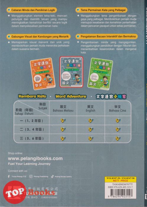 [TOPBOOKS Tunas Pelangi] Kembara Kata / Word Adventure Bahasa Melayu Tahap 1 Tahun 1 , 2 SJKC 文字迷宮 小玩家 國文 第一階段 (2026)