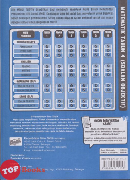 Siri Modul Tuisyen Diterbitkan Bagi Memenuhi Keperluan Murid Dalam Menghadapi Pentaksiran Bilik Darjah (PBD). Kandungan Buku Ini Padat Dan Menyeluruh Untuk Dijadikan Bahan Sokongan Pembelajaran. Setiap Soalan Digarap Dalam Pelbagai Bentuk Dan Sesuai Dengan Semua Tahap Penguasaan Murid
