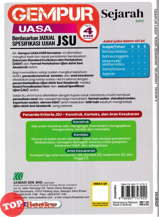 Product Image [TOPBOOKS Sasbadi] Gempur UASA JSU Sejarah Tahun 4 KSSR Semakan (2026)