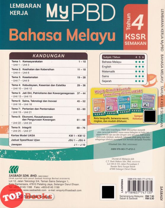 [TOPBOOKS Sasbadi] Lembaran Kerja MyPBD Bahasa Melayu Tahun 4 KSSR Semakan (2026)
