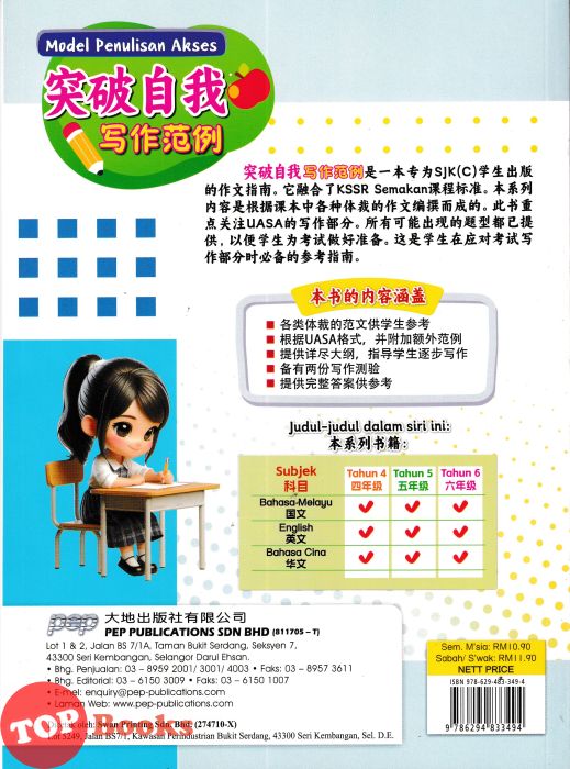 [TOPBOOKS PEP] Model Penulisan Akses UASA 2.0 SJKC Bahasa Cina Tahun 4 KSSR Semakan 突破自我 写作范例 华文 4年级 (2024)