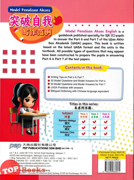 [TOPBOOKS PEP] Model Penulisan Akses UASA 2.0 SJKC English Year 4 KSSR Semakan 突破自我 写作范例 英文 4年级 (2024)