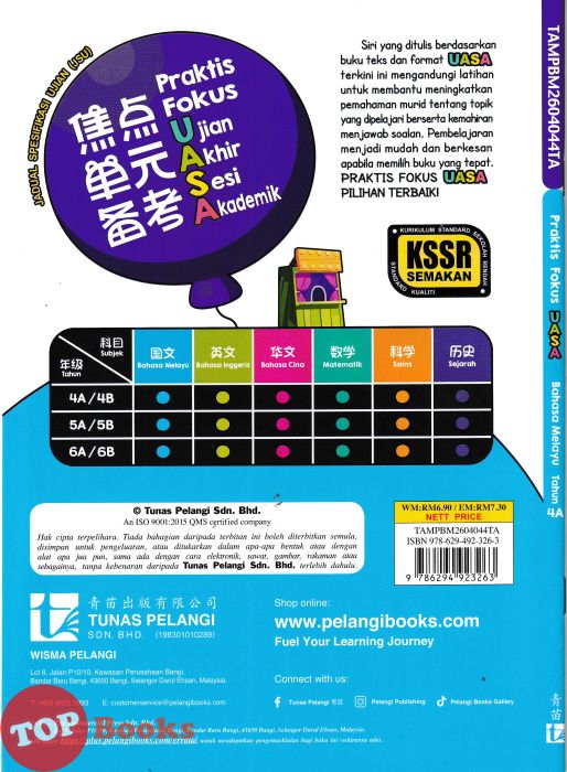 [TOPBOOKS Tunas Pelangi] Praktis Fokus UASA Bahasa Melayu Tahun 4A SJKC 焦点单元备考 国文 4A年级 (2025)