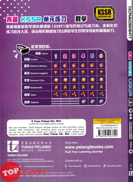 青苗 KSSR 单元练习 是根据最新课本和 (DSKP) 课程与评价标准 编写的笔记与练习本。多样化的练习由浅入深,适合用作随堂练习以评估学生对所学技能掌握能力。