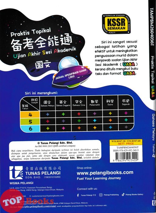 Siri ini sangat sesuai sebagai latihan yang efektif untuk meningkatkan penguasaan murid dalam menjawab soalan Ujian Akhir Sesi Akademik (UASA) kerana ditulis mengikut buku teks dan format UASA.