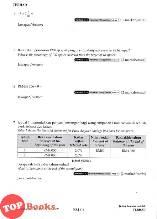 [TOPBOOKS Ilmu Bakti] Kertas Model UASA Matematik Tahun 5 KSSR Semakan Dwibahasa (2026)