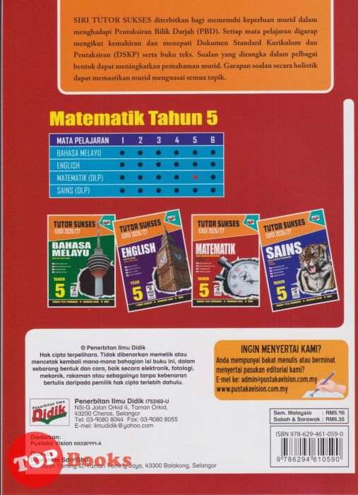 [TOPBOOKS Ilmu Didik] Tutor Sukses Matematik Tahun 5 Semakan KSSR DLP (2026)