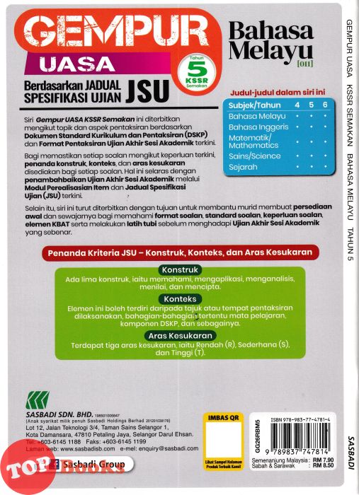 [TOPBOOKS Sasbadi] Gempur UASA JSU Bahasa Melayu Tahun 5 KSSR Semakan (2026)