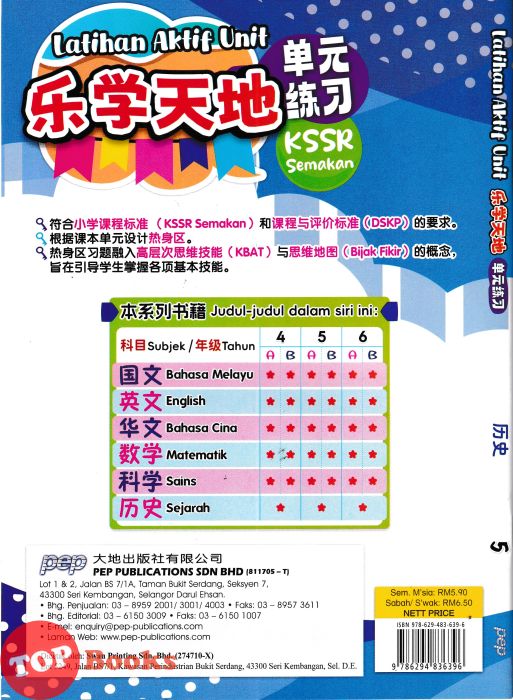 Product Image [TOPBOOKS PEP] Latihan Aktif Unit SJKC Sejarah Tahun 5 KSSR Semakan 乐学天地 单元练习 历史 5年级 (2025)