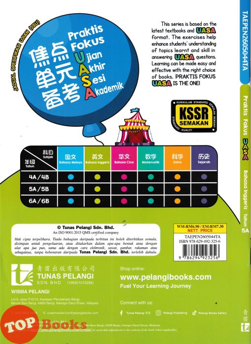 [TOPBOOKS Tunas Pelangi] Praktis Fokus UASA JSU Bahasa Inggeris Tahun 5A SJKC 焦点单元备考 英文 5A年级 (2026)