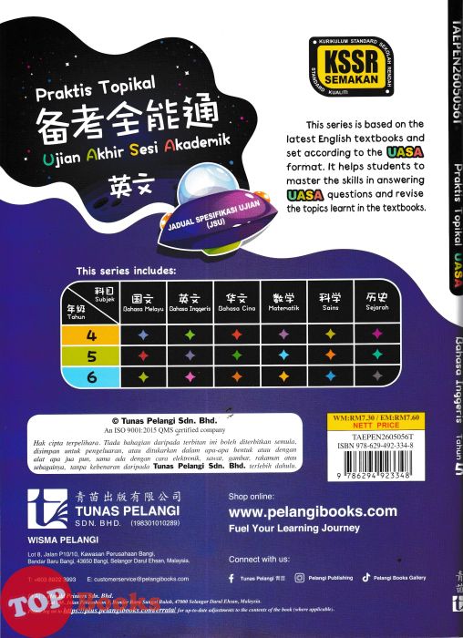 [TOPBOOKS Tunas Pelangi] Praktis Topikal UASA JSU Bahasa Inggeris Tahun 5 SJKC 备考全能通 英文5年级 (2026)