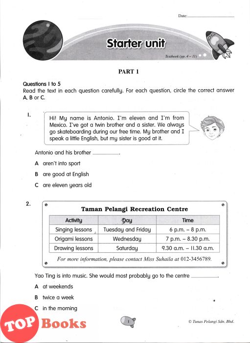 This series is based on the latest English textbooks and set according to the UASA format. It helps students to master the skills in answering UASA questions and revise the topics learnt in the textbooks.