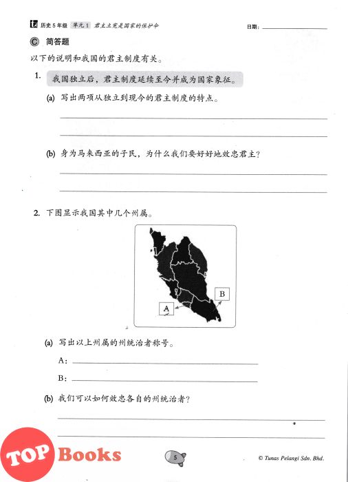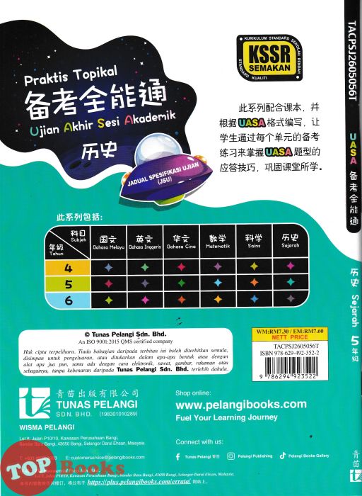 [TOPBOOKS Tunas Pelangi] Praktis Topikal UASA JSU Sejarah Tahun 5 SJKC 备考全能通 历史5年级 (2026)