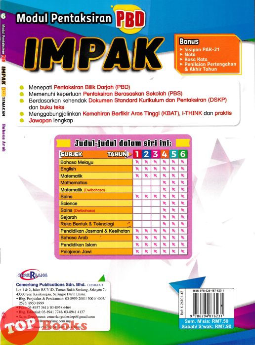[TOPBOOKS Cemerlang] Modul Pentaksiran PBD Impak Bahasa Arab Tahun 6 KSSR Semakan (2026)