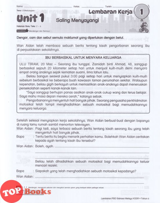 [TOPBOOKS Ilmu Bakti] Lembaran PBD Bahasa Melayu Tahun 6 KSSR Semakan (2026)