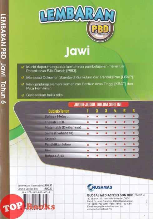 [TOPBOOKS Nusamas] Lembaran PBD Jawi Tahun 6 (2026)
