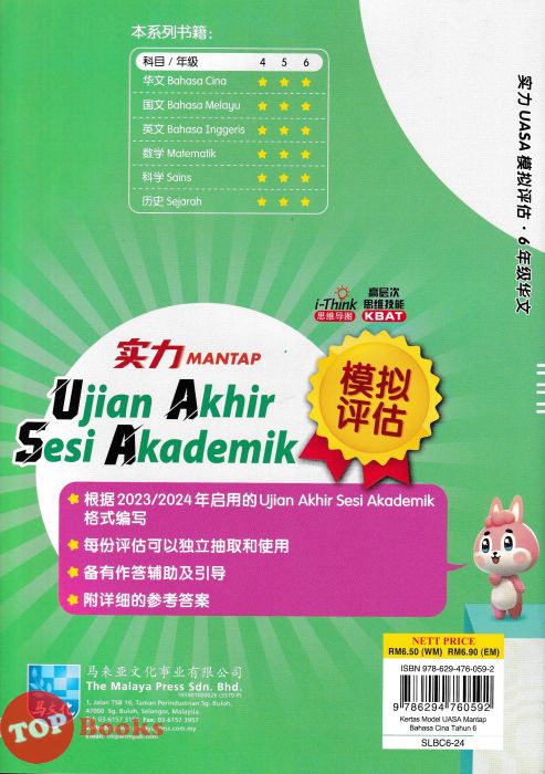 [TOPBOOKS Malaya Press UPH] Kertas Model UASA Mantap Bahasa Cina Tahun 6 SJKC KSSR Semakan 华文 (2024)