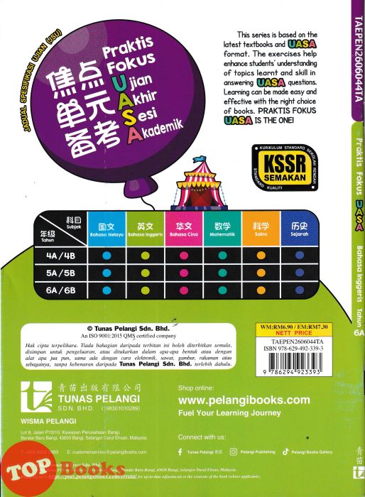 [TOPBOOKS Tunas Pelangi] Praktis Fokus UASA JSU Bahasa Inggeris Tahun 6A SJKC 焦点单元备考 英文 6A年级 (2026)