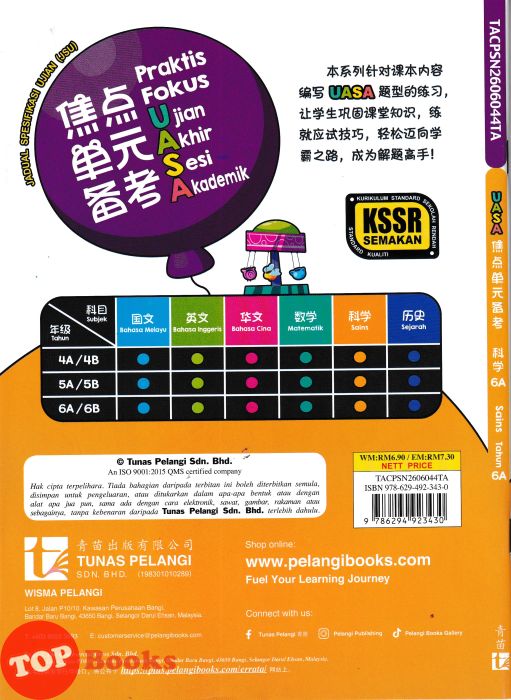 [TOPBOOKS Malaya Press] Praktis Topik Semai UASA Sains 6B SJKC KSSR Semakan 成长单元练习 科学 6B (2025)