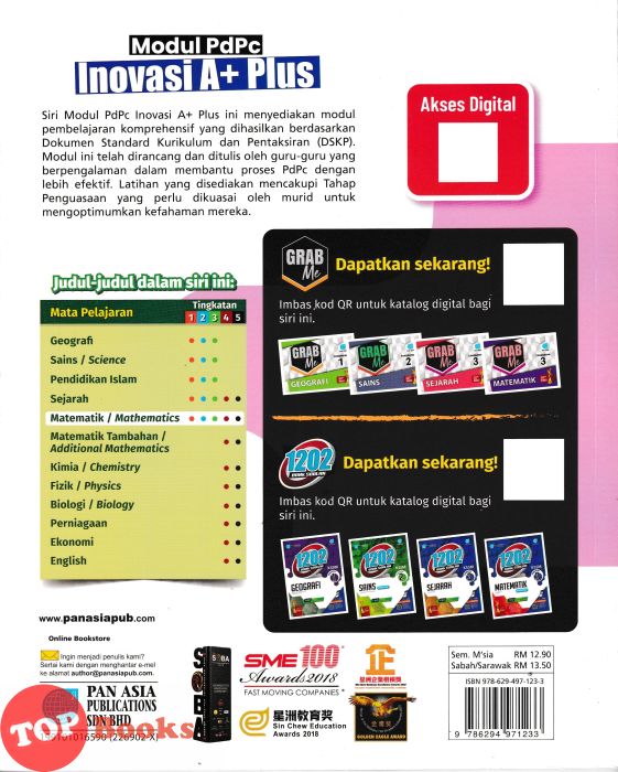 Siri Modul PdPc Inovasi A+ Plus ini menyediakan modul pembelajaran komprehensif yang dihasilkan berdasarkan Dokumen Standard Kurikulum dan Pentaksiran (DSKP). Modul ini telah dirancang dan ditulis oleh guru-guru yang berpengalaman dalam membantu proses PdPc dengan lebih efektif. Latihan yang disediakan mencukupi Tahap penguasaan yang perlu dikuasai oleh murid untuk mengoptimumkan kefahaman mereka.